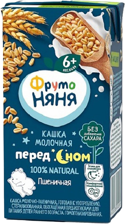 Срок годности в днях: 240Состав: Молоко сухое цельное, мука пшеничная, фруктоза, мальтодекстрин, загуститель - крахмал кукурузный, пребиотики - инулин, регулятор кислотности - цитрат натрия, вода питьевая специально подготовленнаяСтрана изготовления: РоссияПроизводитель: Фрутоняня