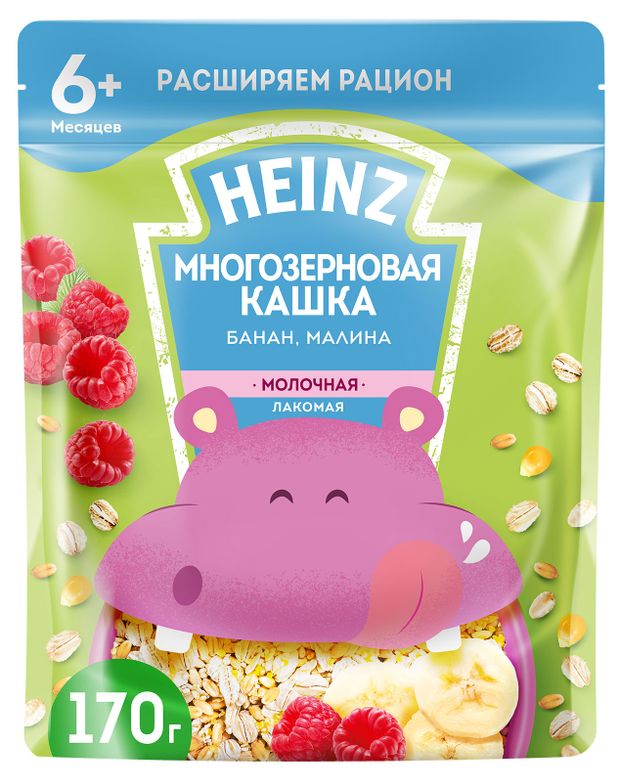 Каша детская Heinz Лакомая молочная многозерновая с малиной и бананом с 6 месяцев 170 г