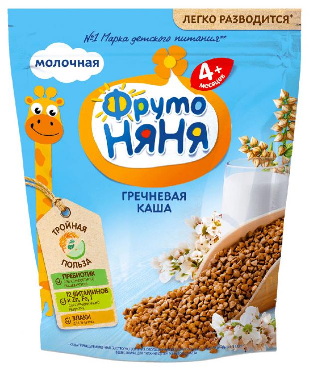 ФрутоНяня каша гречневая молочная быстрорастворимая, обогащённая пребиотиками, витаминами и минеральными веществами, для питания детей раннего возраста.