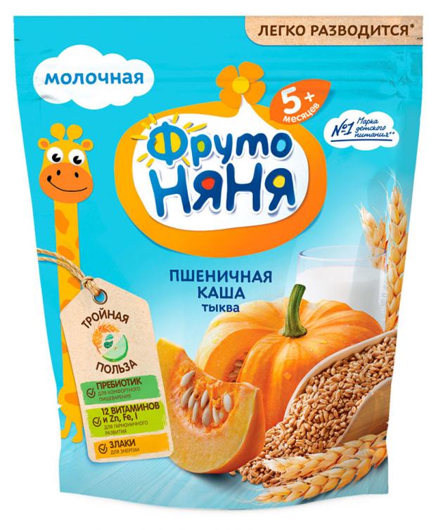 ФрутоНяня каша пшеничная с тыквой молочная быстрорастворимая, обогащённая пребиотиками, витаминами и минеральными веществами, для питания детей раннего возраста.