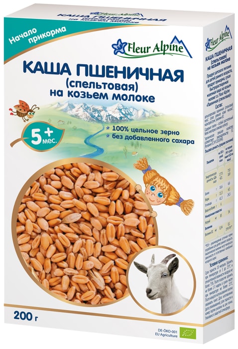 Каша пшеничная Fleur Alpine Organic спельтовая на козьем молоке с 5 месяцев 200 г