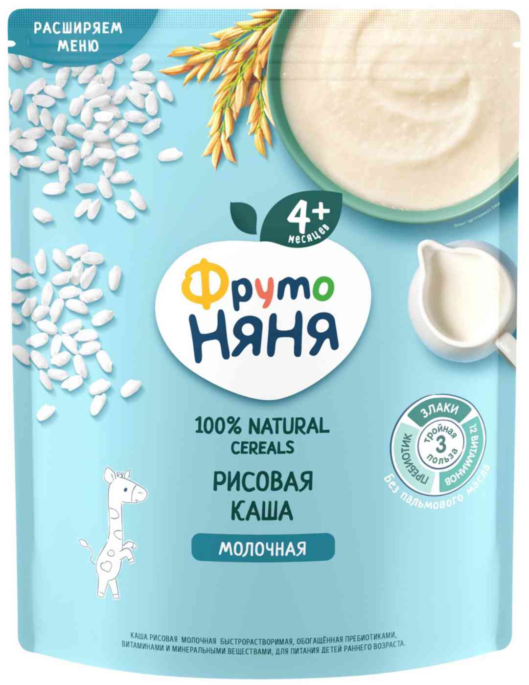Каши "ФрутоНяня" производятся только из натурального сырья и дополнительно обогащены витаминами и минеральными веществами.Тройная польза:- Пребиотик помогает поддерживать полезную микрофлору, таким образом способствуя улучшению пищеварения- 12 витаминов и Zn, Fe, I. Рисовая крупа сама по себе полезна, но ее дополнительно обогатили. Витамины C, E, PP, витамины группы В, А, D3, биотин, пактотеновая и фолиевая кислоты, а также минеральные вещества - цинк, йод, железо - добавляются в кашу в самом конце приготовления и не подвергаются термообработке. Так они сохраняют все свои полезные свойства, помогают малышу расти здоровыми и гармонично развиваться.- Злаки. Рисовая крупа содержит крахмал, который обладает обволакивающими свойствами и содержит углеводы, восполняющие запасы энергии для роста.