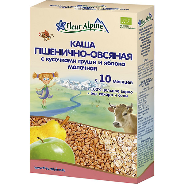 Каша Fleur Alpine молочная пшенично-овсяная с кусочками груши и яблока, с 10 мес