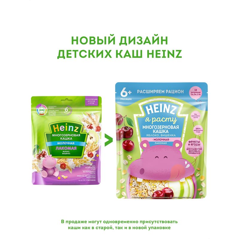 Каша Heinz Лакомая многозерновая молочная с яблоком и вишенкой 170 г