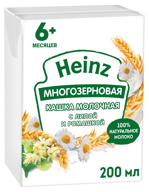 Каша Heinz молочная, многозерновая с липой и ромашкой, с 6 месяцев 200 мл