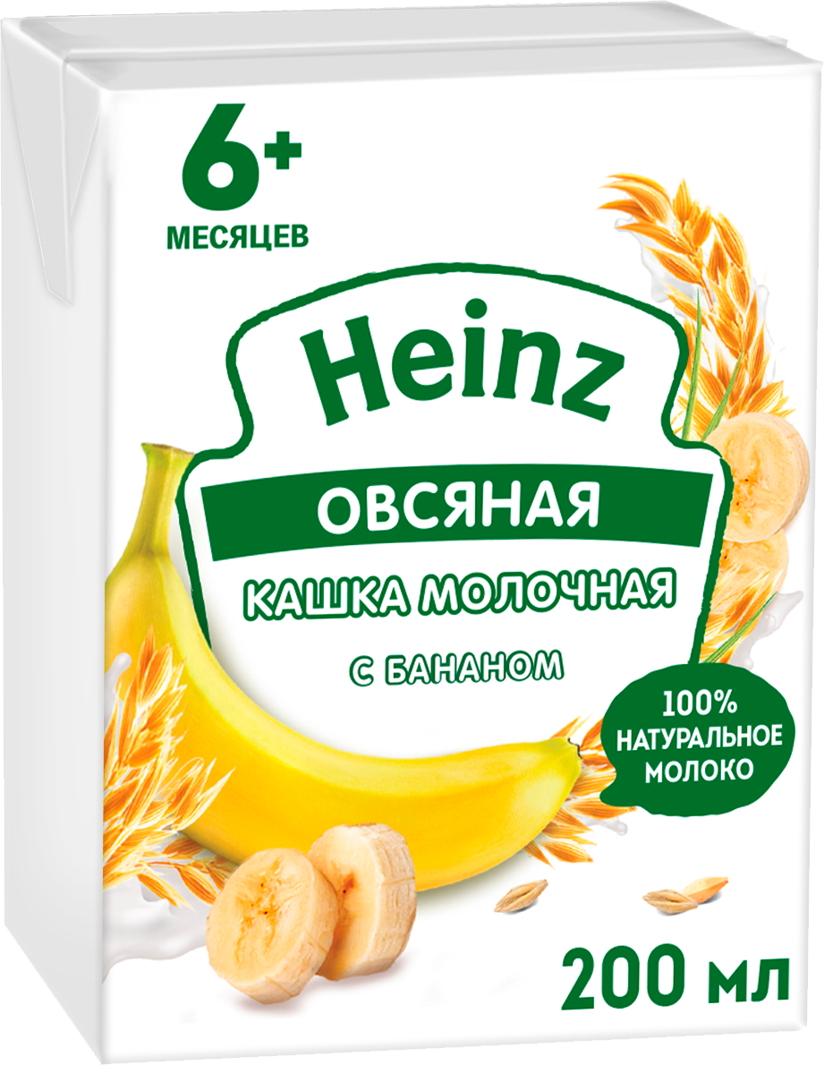 Срок годности в днях: 180Состав: Молоко нормализованное, вода, пюре банана, мука овсяная, фруктоза, крахмал кукурузный, пребиотик - инулин, рыбий жир очищенный, витамины С, Е, D. Продукт содержит глютен.Пищевая ценность: Калорийность: 68Белки: 3Жиры: 2Углеводы: 10Страна изготовления: РоссияПроизводитель: Heinz