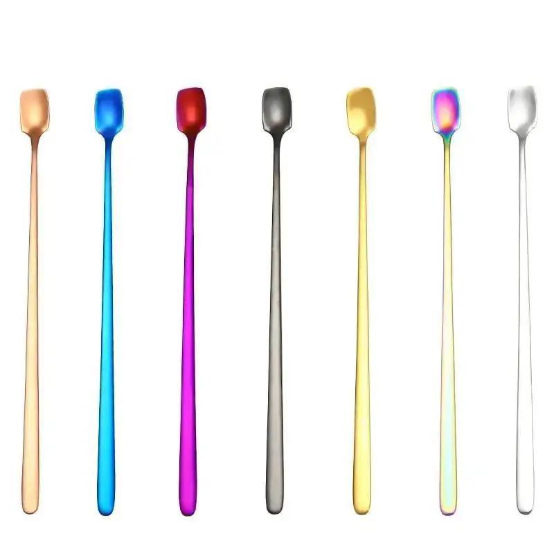 Квадратная головка, длинная ручка, ложка для льда, барная кружка, ложка для коктейлей из нержавеющей стали, домашние ложки для смешивания кофе и меда, оптом Silver