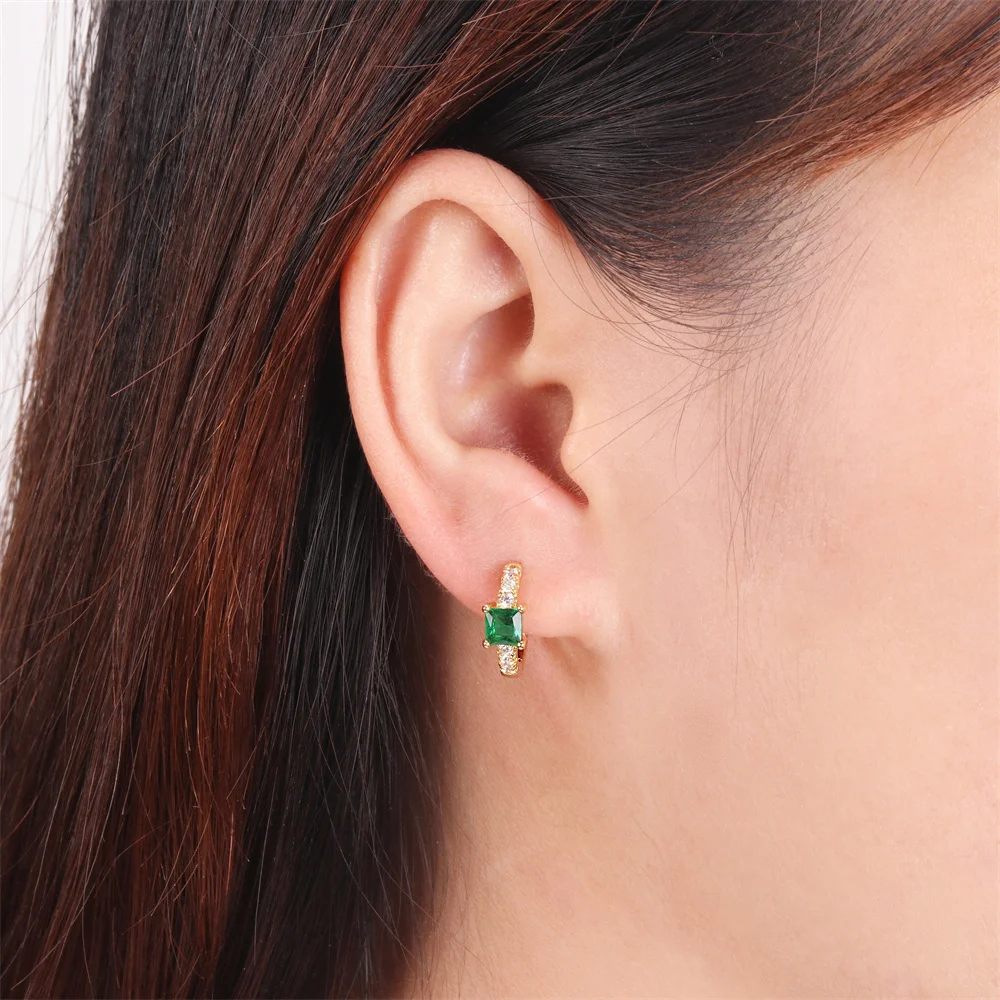Квадратные зеленые блестящие женские элегантные аксессуары для вечерние высококачественные Медные Подарочные женские серьги с золотым по...