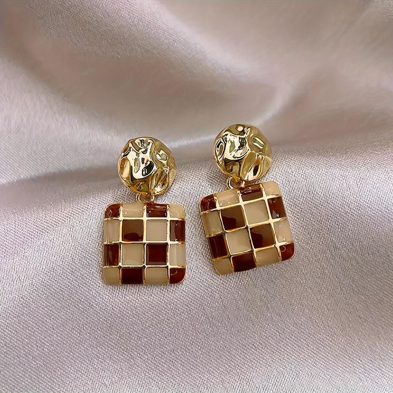 Квадратные серьги в виде шахматной доски, элитные модные универсальные серьги с ощущением феи, легкие роскошные пряжки для ушей