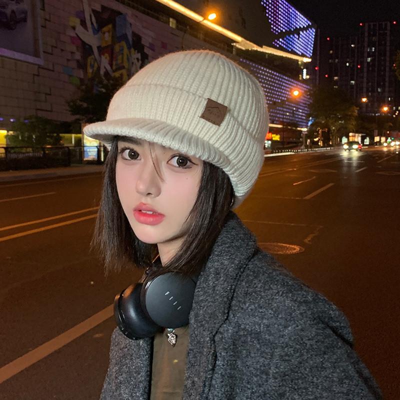 Кепка Очки Вязаная Однотонная Шапка-бини Ветрозащитная Дышащая Для улицы Зима Cream