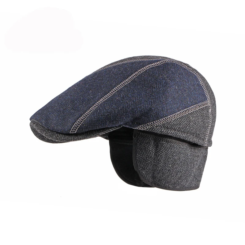 Кепка-берет Мужская простроченная, твидовая хлопковая кепка с защитой ушей в британском ретро стиле, уличная теплая плоская шапка, Осень-зима