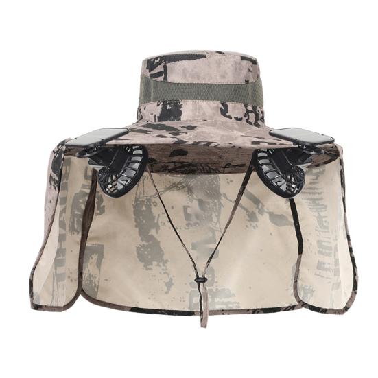 Кепка-веер с солнечной батареей и клапаном на шее, защита от ультрафиолета UPF 50+, с 2 солнечными вентиляторами, дышащая, мужская, летняя, для активного отдыха на природе, для рыбалки, с широкими полями E