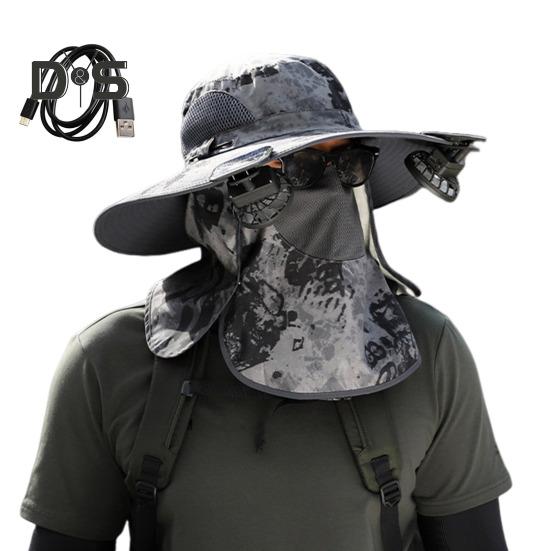 Кепка-веер с солнечной батареей и клапаном на шее, защита от ультрафиолета UPF 50+, с 2 солнечными вентиляторами, дышащая, мужская, летняя, для активного отдыха на природе, для рыбалки, с широкими полями темно-серого