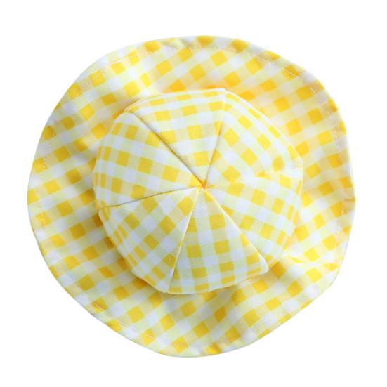 Кепка для домашних животных с клетчатым узором, защита от солнца, дышащая модная шляпа для домашних животных, рыбацкая шляпа, головные уборы для M жёлтый