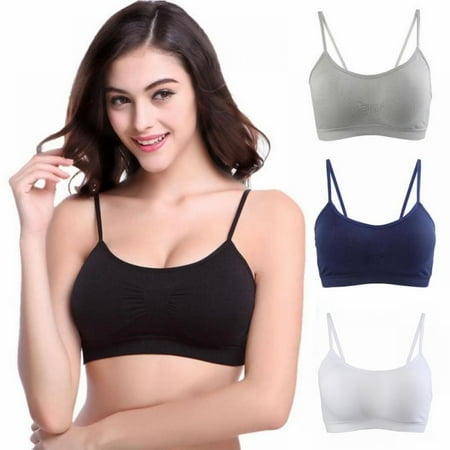 4 Pieces V Neck Women Bra Seamless Padded Camisole Bandeau Tube Bra with Elastic Straps (Black White Grey Royal Blue - Large)