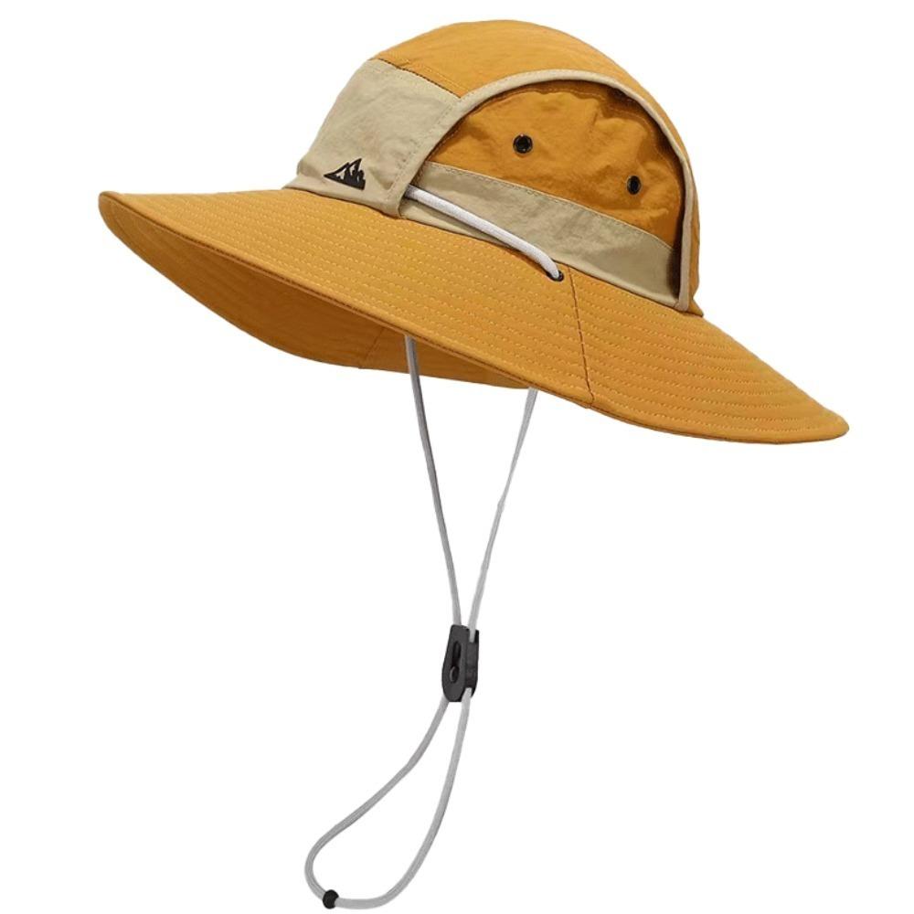 Кепка с большими полями для походов и рыбалки, защита от ультрафиолета, модная кепка со шнурком для альпинизма жёлтый