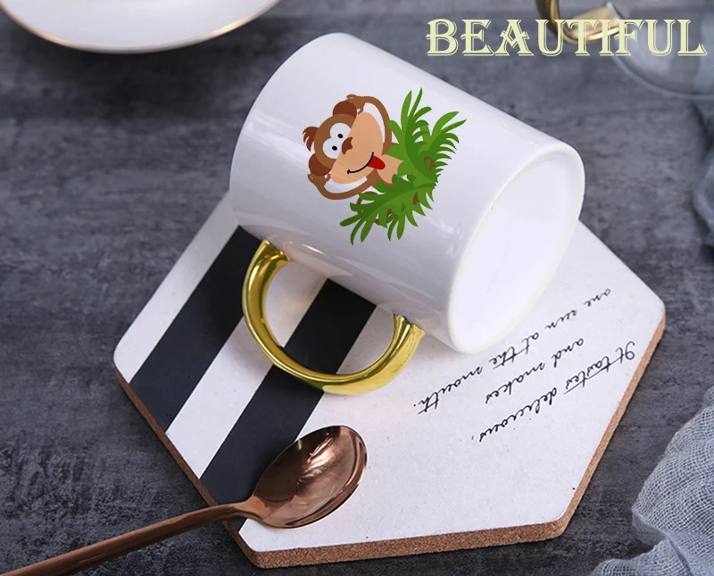 Керамика Кофе кружка для молока чашка для питья с милым рисунком обезьянки, чайная кружка, творческих кружки золотая ручка чашки KTDW-044