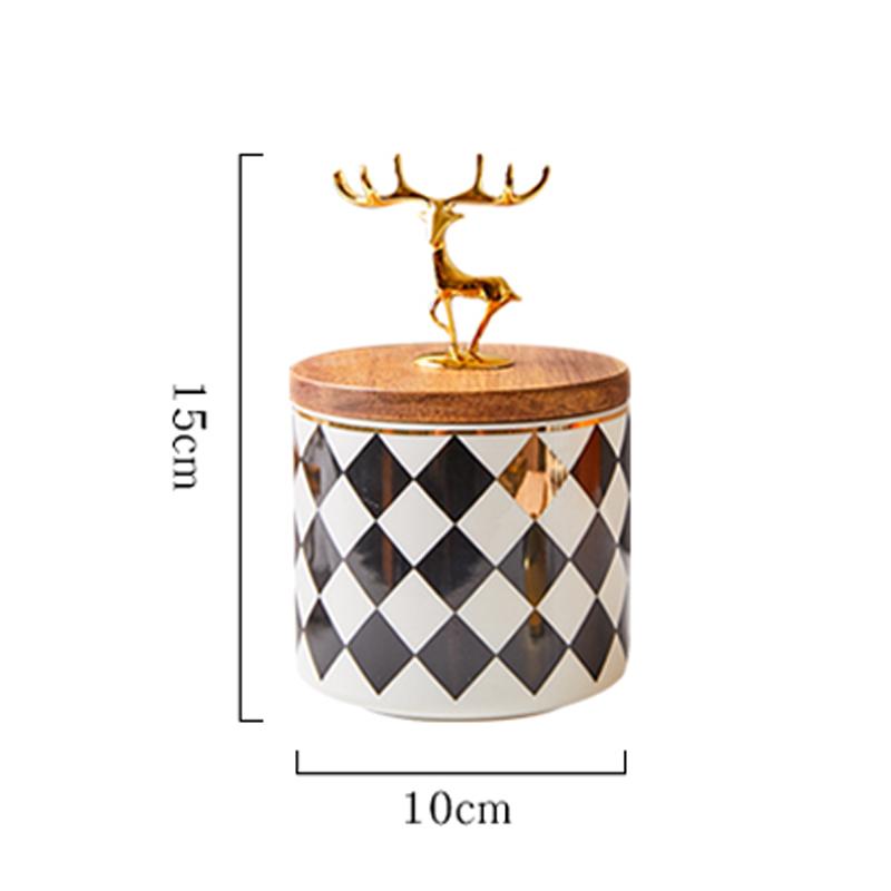 Керамическая банка для конфет в европейском стиле с деревянной крышкой, герметичная банка с золотым оленем, легкая, роскошная, бытовая, декоративная банка для хранения на рабочем столе