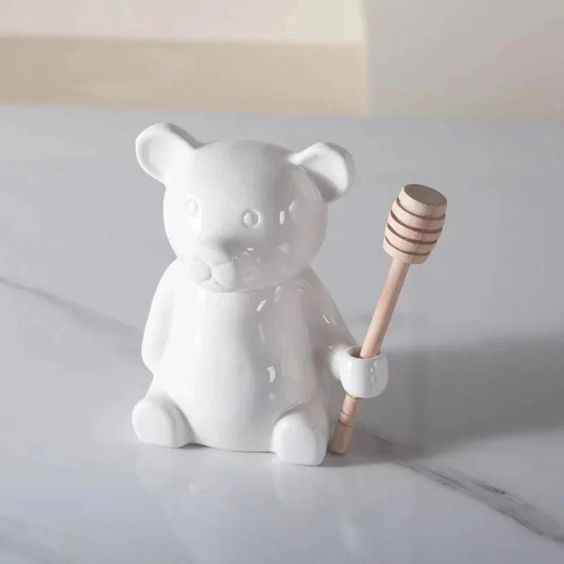 Керамическая банка для меда в форме милого медведя с крышкой, банка для хранения конфет на кухне, ложка для меда, коробка для хранения чая, кухонный аксессуар, домашний декор
