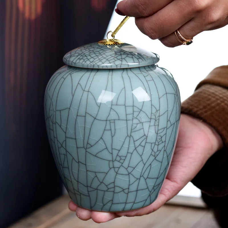 Керамическая банка с трещинами, позолоченная крышка, герметичная банка, емкость для чая, кофе, конфет, термостойкая фарфоровая емкость, контейнер для хранения еды, художественное украшение