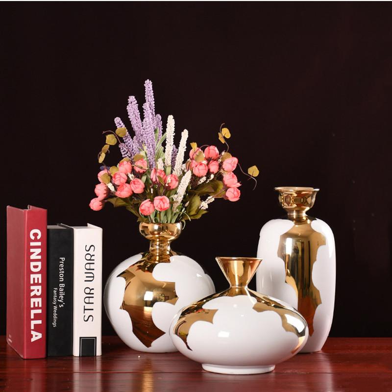 Керамическая ваза Золотая фарфоровая ваза ручной работы для цветов Цветочная композиция Аксессуары Украшения ручной работы Украшения для дома Вазы
