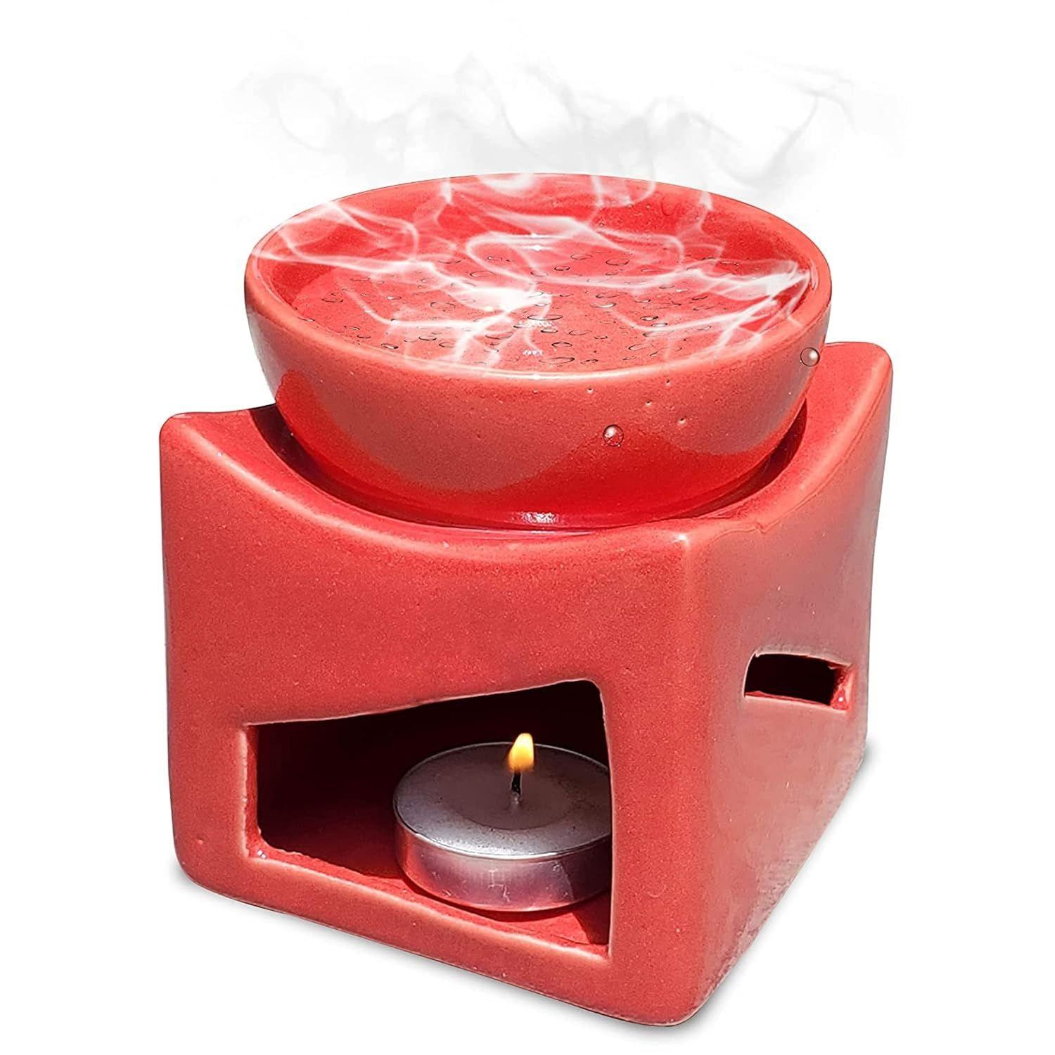 Керамическая глина, работающая от свечи аромалампа, диффузор для масла, очень большая чаша, с 1 чайной свечой, 4,25 дюйма, (красный) красный