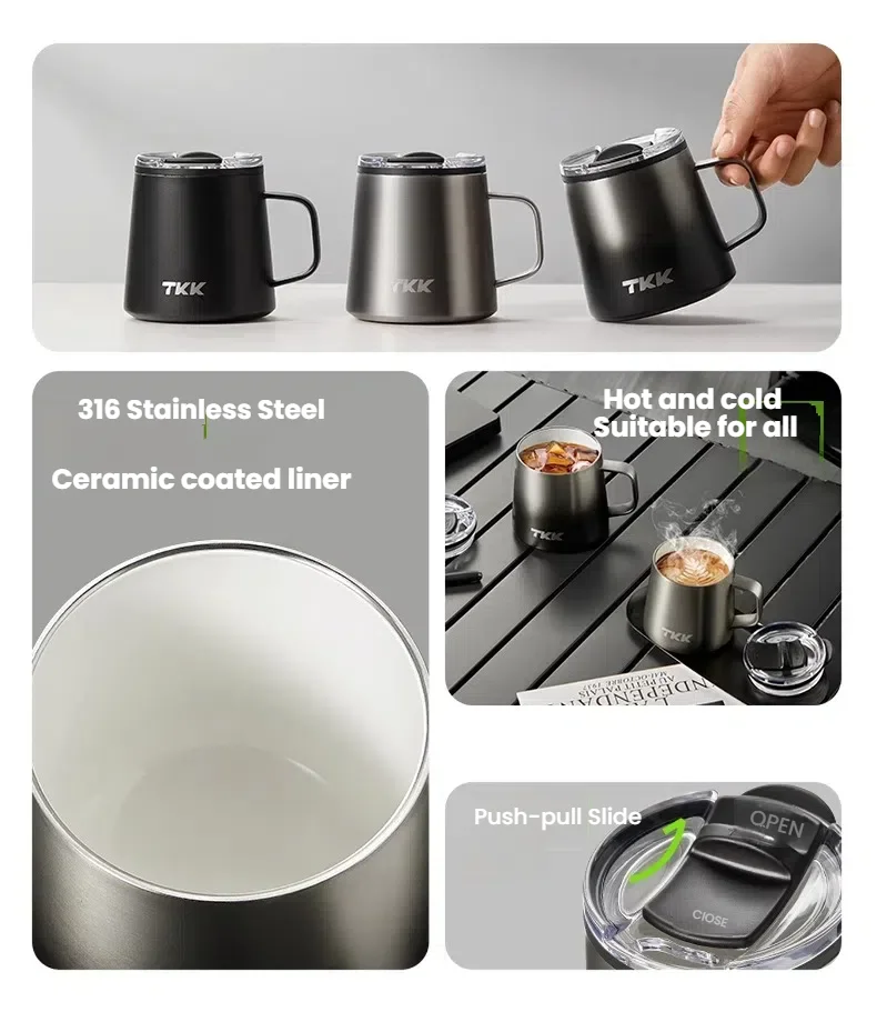 Керамическая дорожная кружка Tkk, герметичная с силиконовой изоляцией, кофейная кружка, чашка для кофе, чашка для воды, термос, изолированная кофейная кружка с крышкой