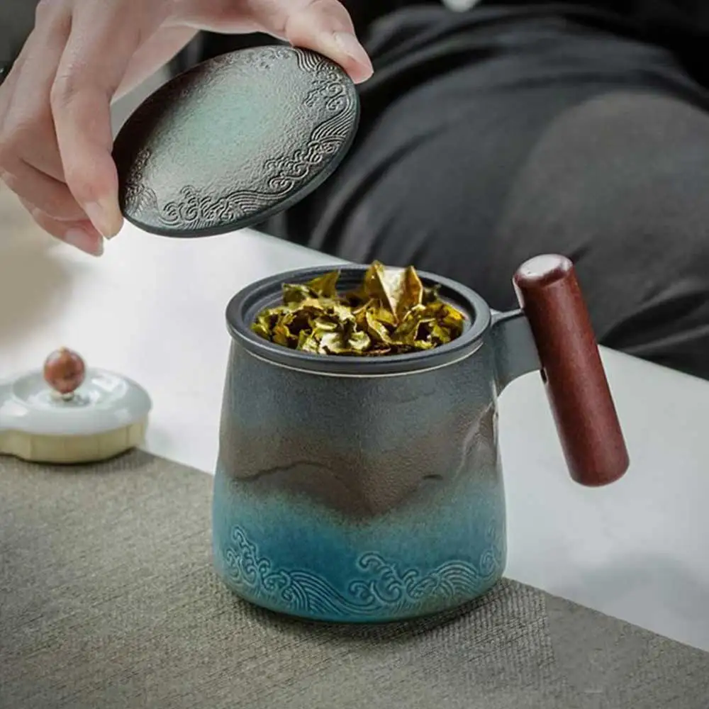 Керамическая кофейная чашка в стиле ретро, офисный фильтр для воды, для чая с крышкой и кружками, деревянная ручка, Подарочная коробка на ден...