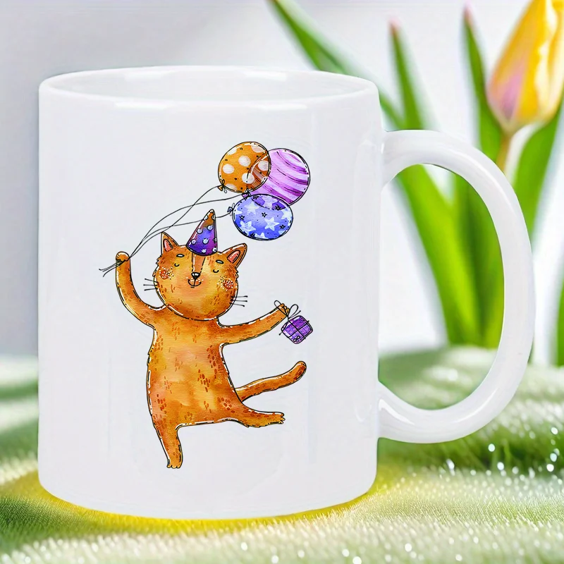Керамическая кружка «Причудливый кот» с воздушными шарами — игривая праздничная шляпа и конфетти, только для мытья рук, прочная белая кофейная чашка для чая