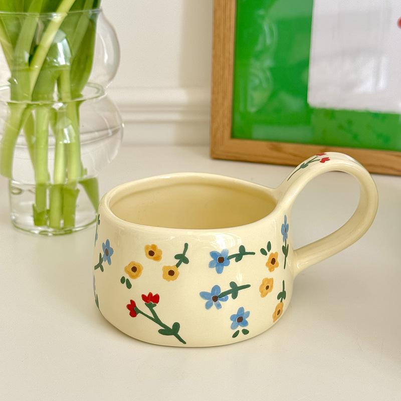 Керамическая кружка в корейском стиле, милая, ручной лепки, с нерегулярным узором из мелких цветов, кофейная чашка, чашки для завтрака, молока, чая, подарок для детей, девочек 201-300ml
