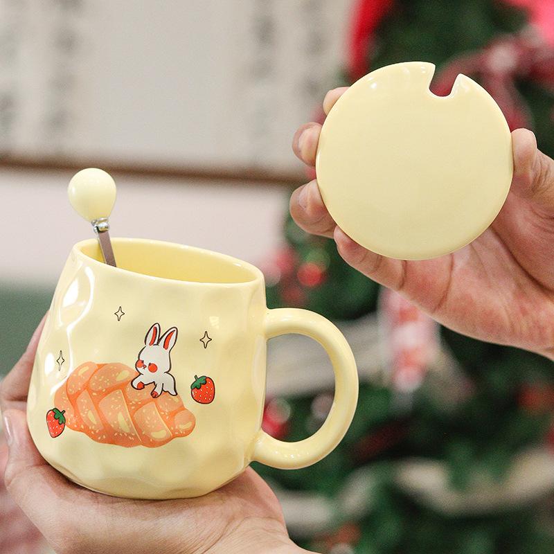 Керамическая кружка в кремовом стиле, чашка для питья воды высокой ценности, чашка с узором щипок с крышкой и ложкой, кофейная чашка, милая чашка для подарка на мероприятие 301-400ml