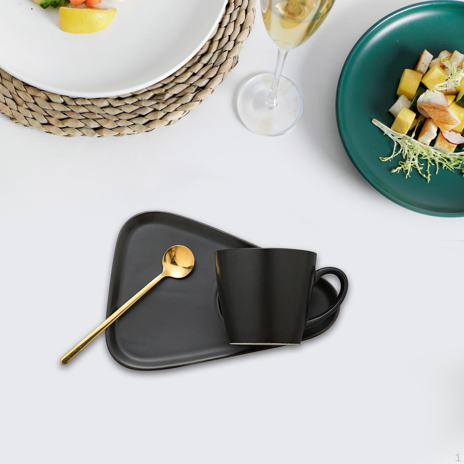 Керамическая кружка для кофе, набор, чашка для капучино с блюдцем и ложкой, новинка для сока, хлопья чёрный