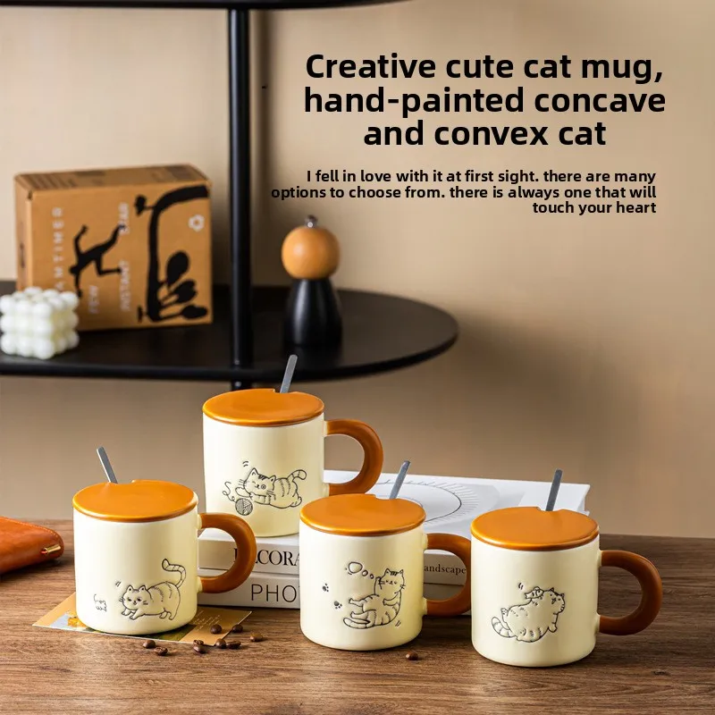 Керамическая кружка для кошки с крышкой, подарок для пары, высокое значение, ручная роспись, милая кошачья чашка для воды, чашка для кофе на завтрак