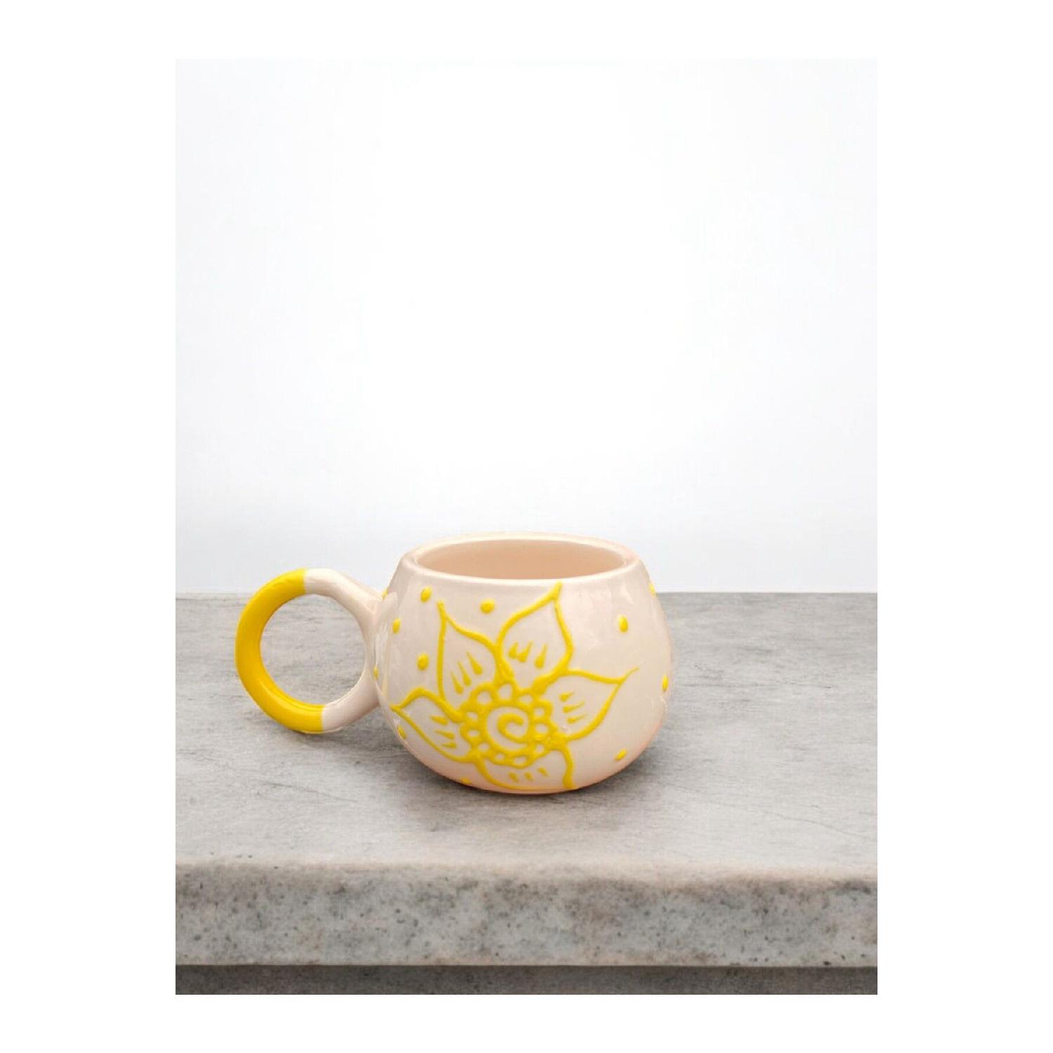 Керамическая кружка ручной работы с тиснением желтого цветка жёлтый