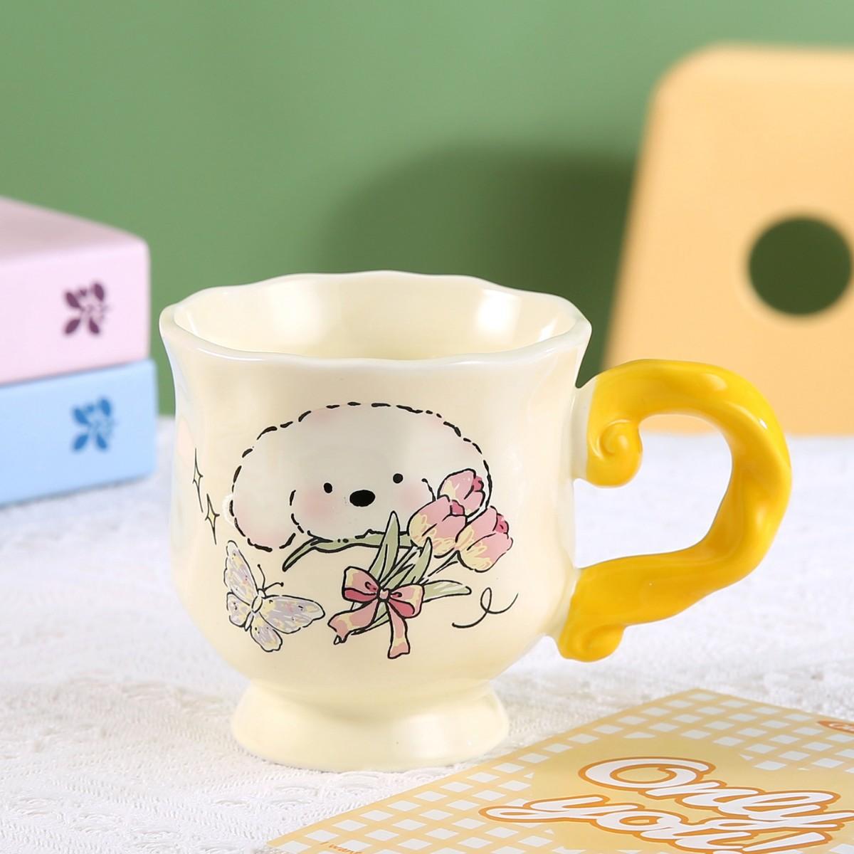 Керамическая кружка Tulip Puppy Mark, кружка в подарок на день рождения, офисная кружка для молока 370ML