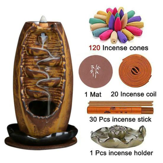 ТЫ ХОМ: Ваш модный домашний декор Форма курильницы очень креативна, и дым этой курильницы льется сверху вниз, как водопад, который выглядит супер уникальным и причудливым. В дополнение к 1 курильнице, он также поставляется со 120 воронками благовоний с обратным потоком, 1 нескользящим ковриком, 1 коробкой малин для благовоний, 1 коробкой благовонных палочек и 1 керамической основой кадила. Изготовленный из высококачественной керамики с изысканным мастерством и великолепными деталями, он выглядит особенным и загадочным. Широко используется в офисах, йоге, гостиных, спальнях, чайных комнатах, храмах и т. Д. Это может создать приятное чувство для вас, и помочь облегчить ваше беспокойство и усталость и т. Д. Кадило также подходит в качестве отличного украшения для дома и интерьера. Имя элемента: Горелка для благовоний Материал: керамический Характеристики: Тонкое мастерство, прочный, творческий, уникальная форма Детали размера: Размер курильной горелки: 20,5 см х 10,5 см х 10,5 см(Прибл.) База: 13см x 13см x 5см(Прибл.) Заметки: Из-за разницы в освещении и настройках экрана цвет элементов может немного отличаться от изображения. Пожалуйста, позвольте небольшую разницу в размерах из-за различных ручных измерений. В коплект входит: 120 x Благовония с обратным потоком 1 х нескользящий коврик 1 коробка витков благовоний(20шт) 1 Коробка палочки благовоний(30Pcs) 1 x керамический Курильница 1 x Керамическая основа кадиля