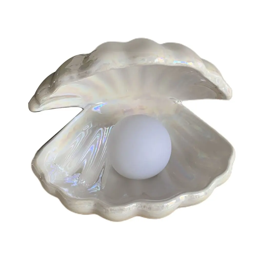 Керамическая лампа в виде ракушек для девочек, сказочное украшение с жемчугом, ночсветильник для хранения, настольное украшение с жемчужин...