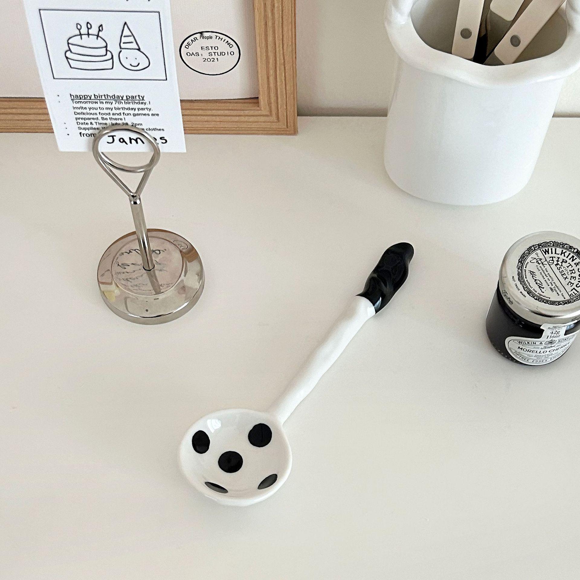 Керамическая миска в горошек с двумя ручками - Черно-белая, Неправильной формы для лапши быстрого приготовления или салата