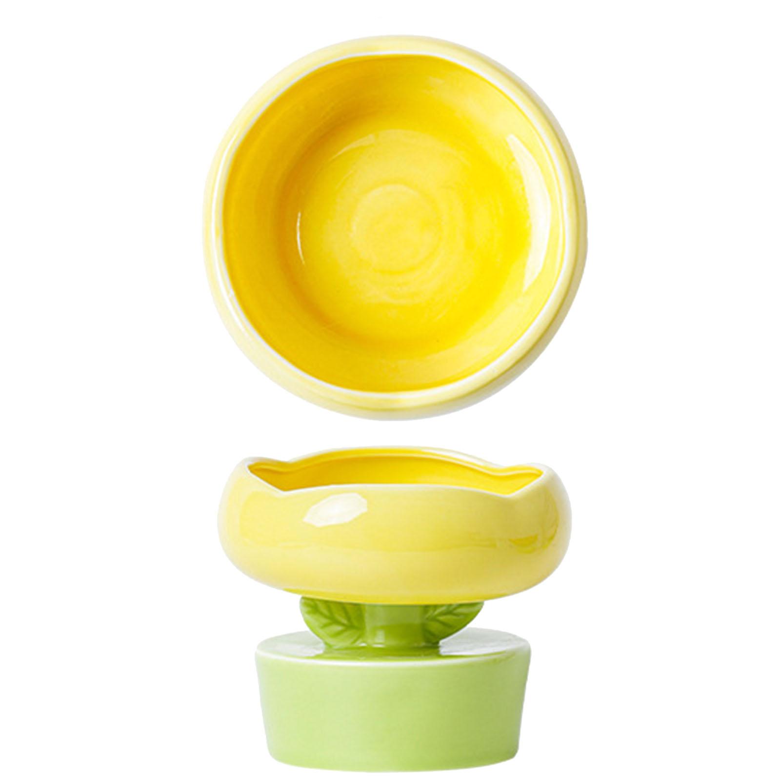 Керамическая миска для корма для кошек в форме милого цветка, большая емкость, защита шеи и позвоночника, приподнятая миска для корма для домашних животных жёлтый