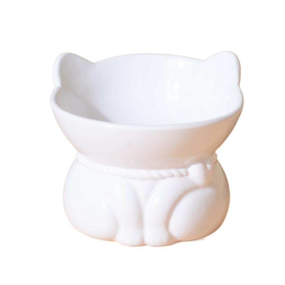 Керамическая миска для питомца на высокой ножке, милая миска для корма для собаки, поилка для питомца, котенок, щенок белый