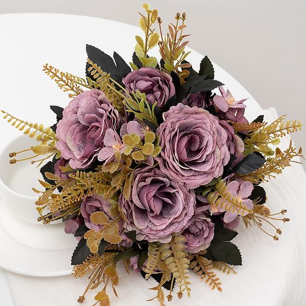 decorative flowers & wreaths retro silk artificial rose diy autumn wedding house decoration christmas arrangement fake pentecost hortensions