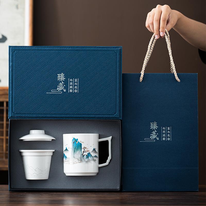 Керамическая офисная чашка в подарочном наборе, кружка с разделением для чая, бизнес-подарок, сувенир для мероприятия 400ml