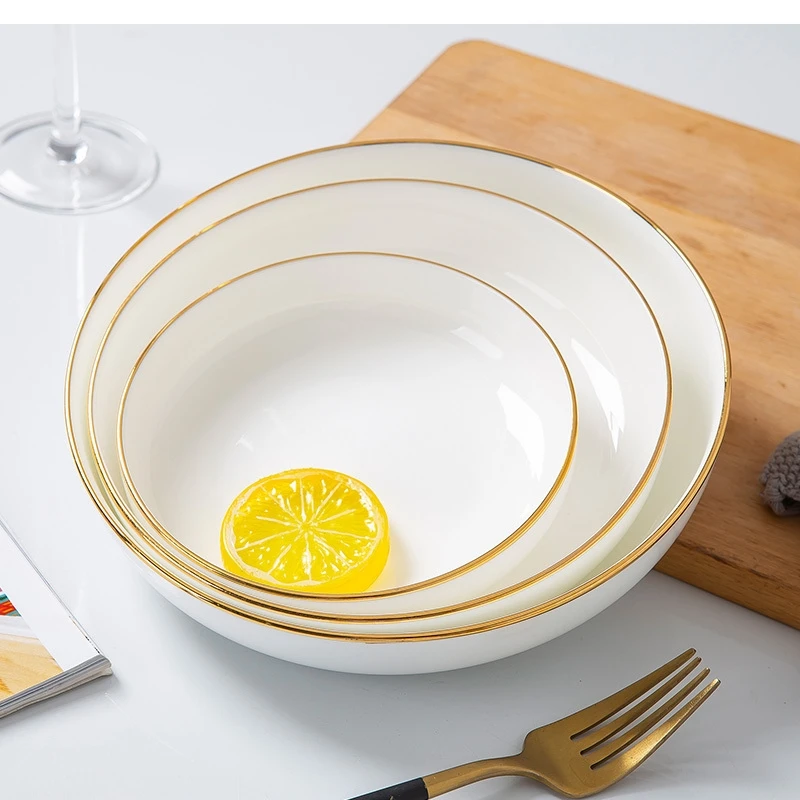 Керамическая посуда для супа, домашняя посуда для отеля, ручная роспись, позолоченная посуда, кухонные принадлежности