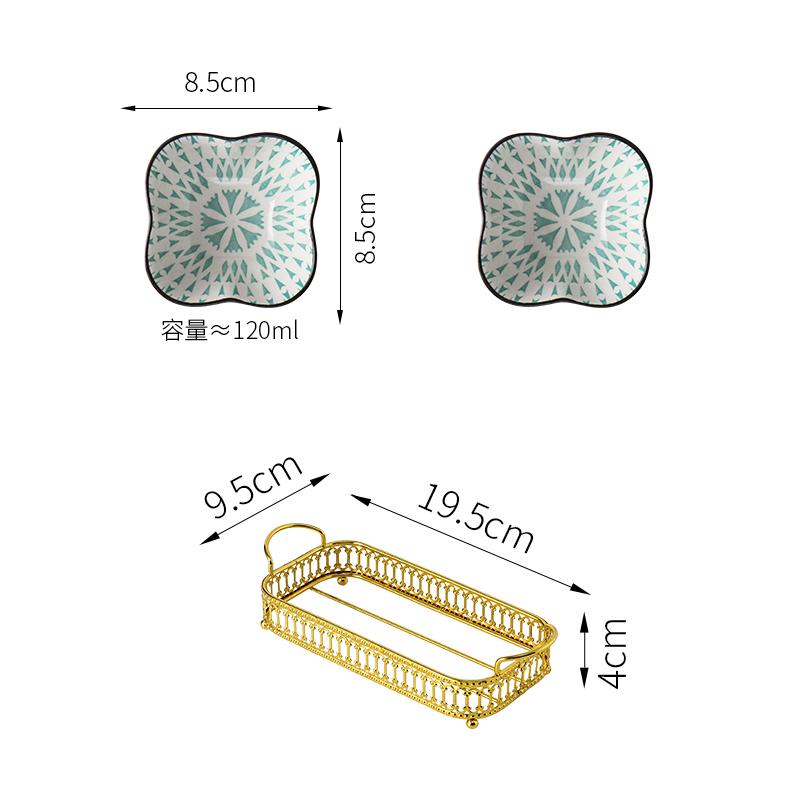 Керамическая тарелка для закусок Чаша для закусок с металлической рамкой Закуски в японском стиле Блюдо для сухофруктов с золотым основанием Тарелка для фруктов Dim Sum