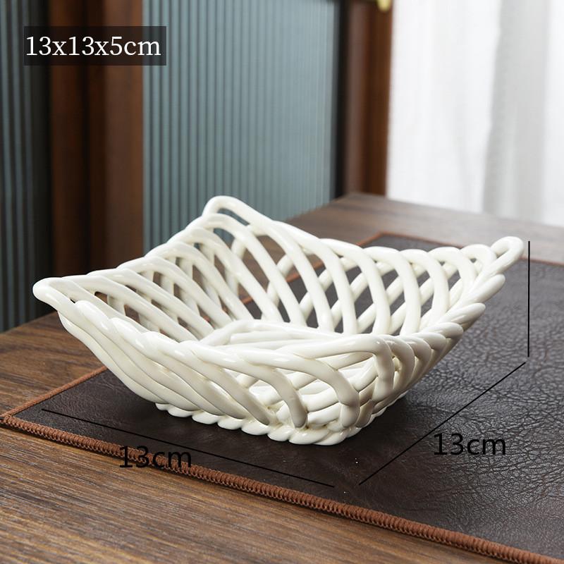 Керамическая тарелка для фруктов, плетеная вручную, блюдо для димсамов, конфетница, тарелки для закусок, полая корзина для фруктов, десертные тарелки, форма для торта, поднос для фруктов