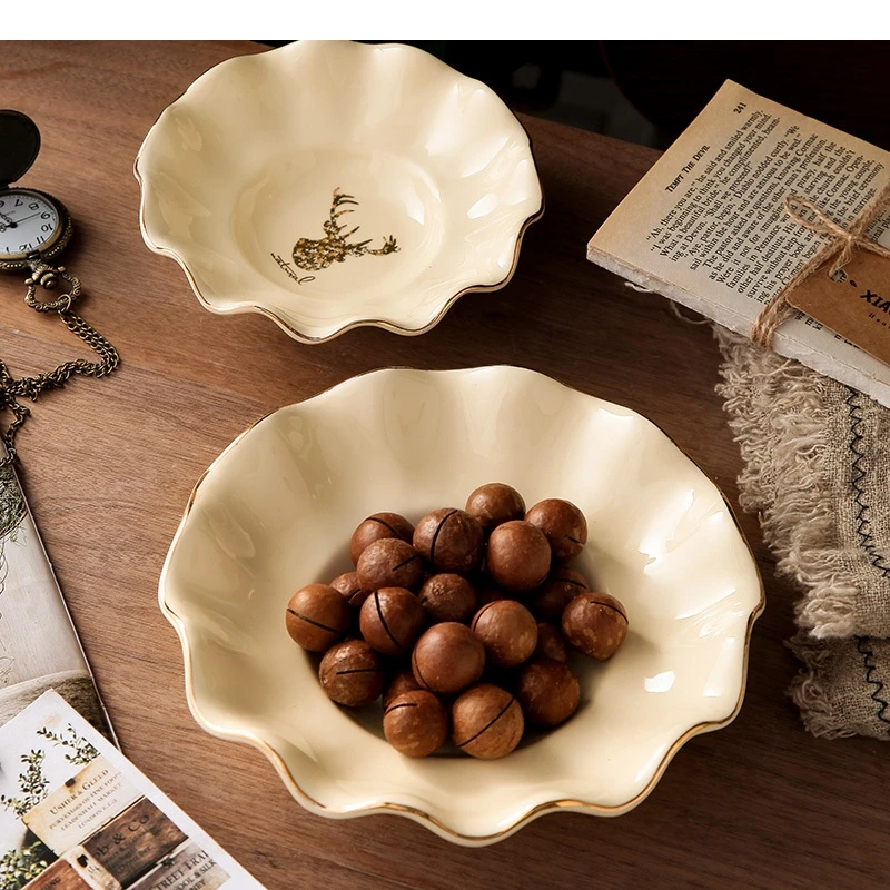 Керамическая тарелка с фруктами, лоток для хранения салатов, закусок, десертов, домашняя посуда неправильной формы, сушеный орех