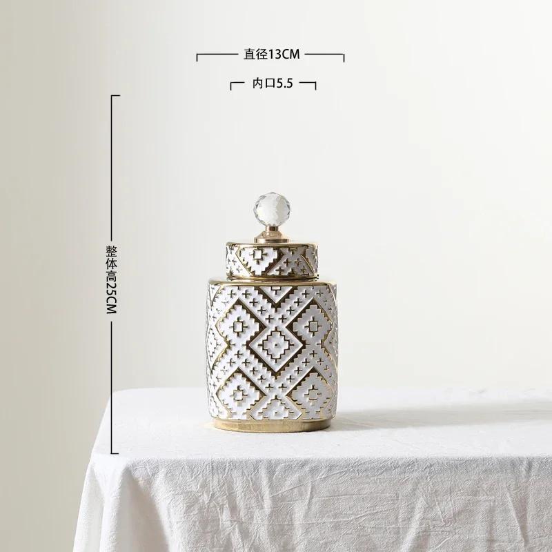 Керамическая хрустальная декоративная банка Checkmate can Геометрические золотые рельефные банки Емкость для хранения Ваза Контейнер для хранения Украшение для дома