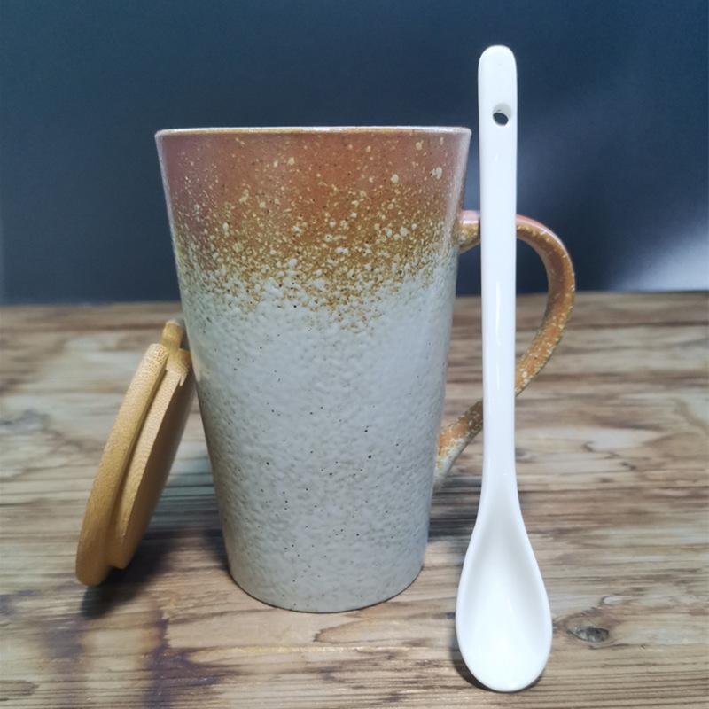 Керамическая чашка Ретро грубая керамика Кофейная чашка Креативная японская чашка для завтрака с ложкой и крышкой Подарочная чашка Офисная чашка 401-500ml