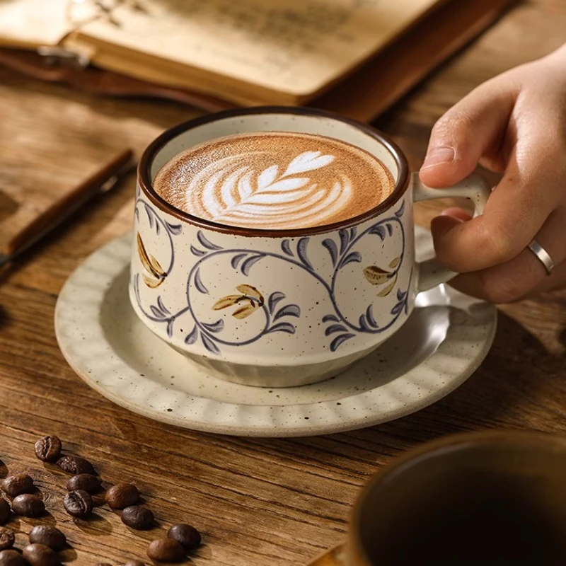 Керамическая чашка в стиле ретро, грубая керамика, маленькая емкость, набор кофейных чашек и блюдец, японская керамическая чашка для послеобеденного чая, кофейная чашка