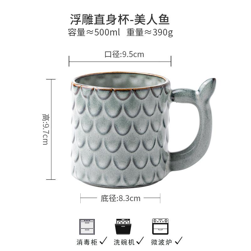 Керамическая чашка с тиснением и рисунком «русалка», персонализированная ретро-глазурованная кофейная чашка, экспорт 500ml